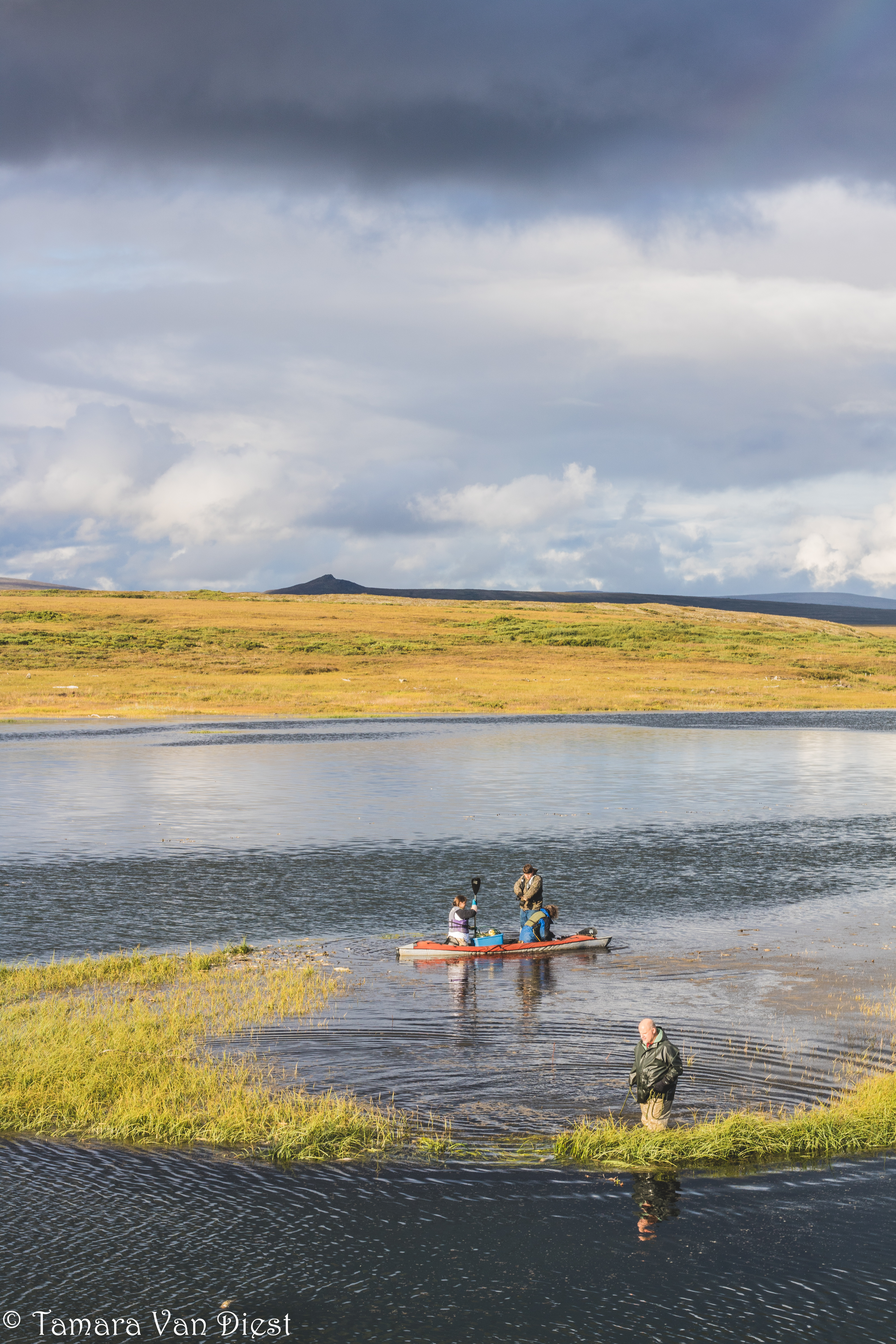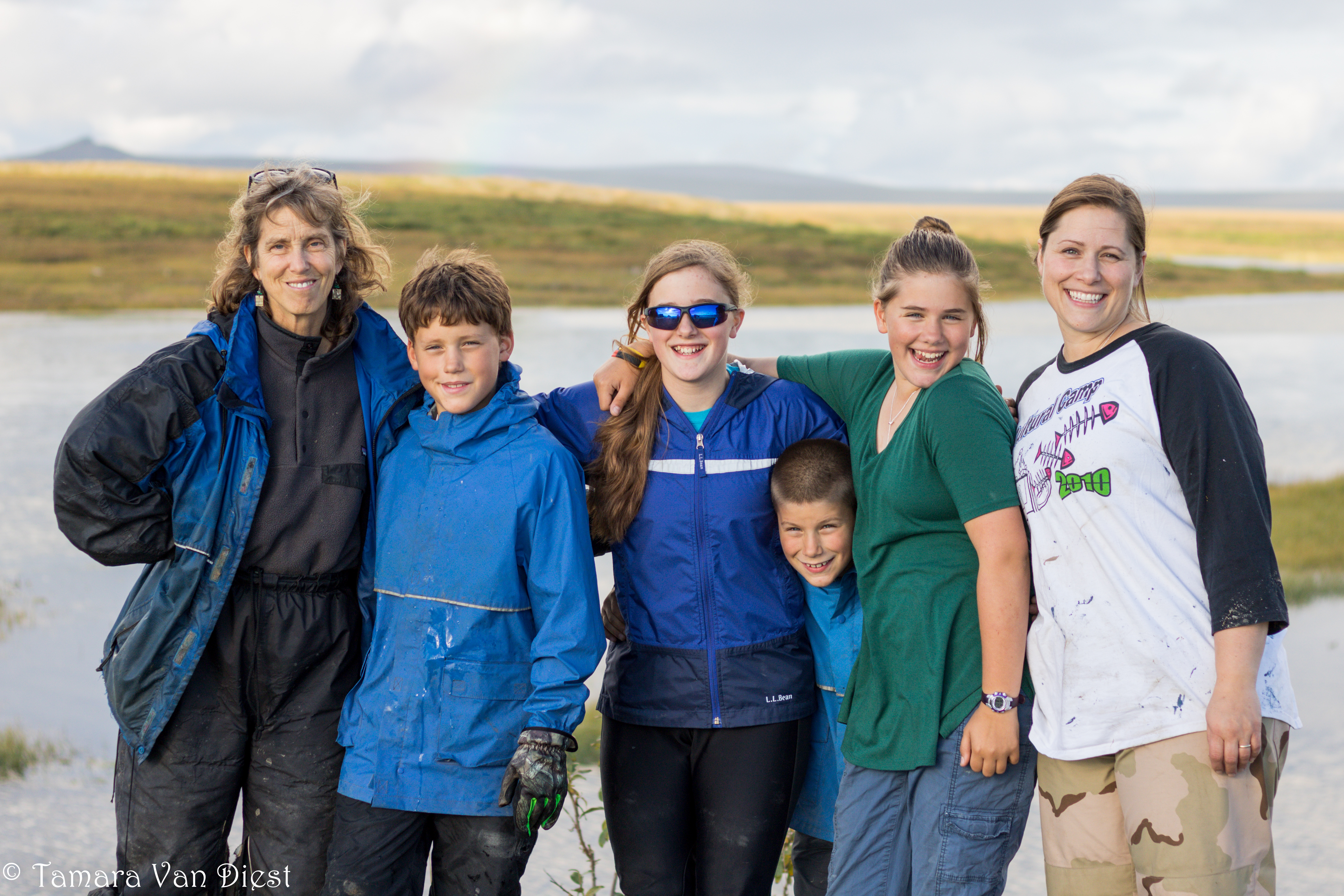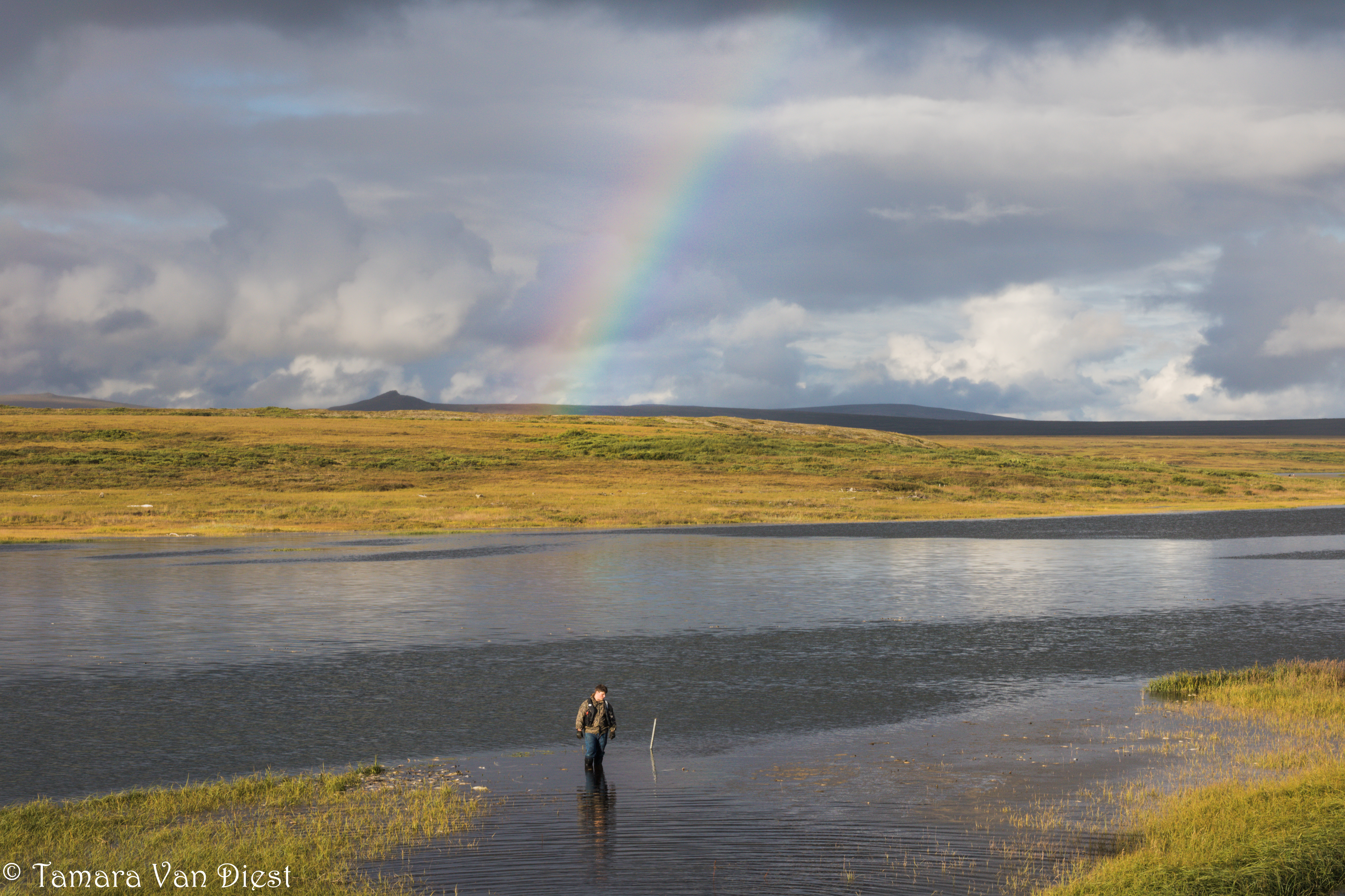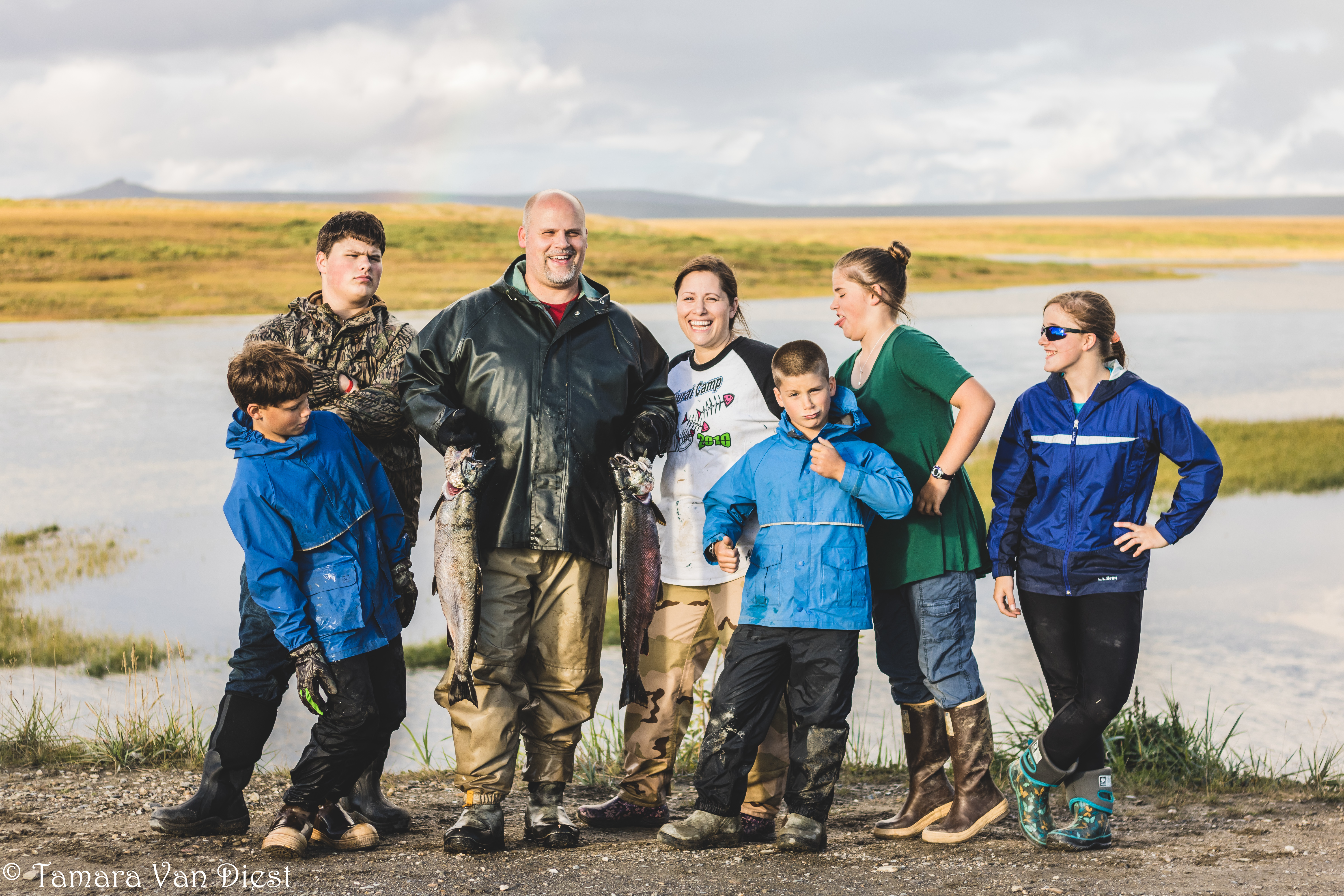 We had rain showers off and on all afternoon and out came a lovely rainbow, seen faintly below in the images. After the sun snuck behind a cloud for a wee minute, we took the opportunity for an impromptu, subsistence-style photoshoot!